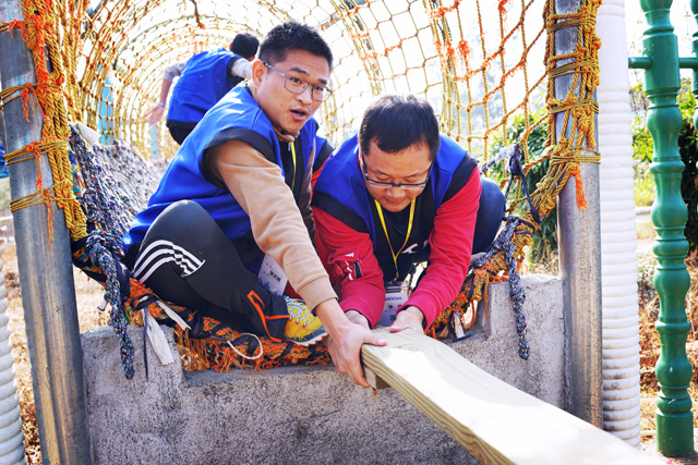 ? ? ? ? 《長(zhǎng)板橋之戰(zhàn)》則通過(guò)考驗(yàn)團(tuán)隊(duì)上下橋面的平衡力,讓學(xué)員們懂得個(gè)人對(duì)團(tuán)隊(duì)的影響力,促進(jìn)團(tuán)隊(duì)溝通協(xié)作,建立彼此之間的默契。4個(gè)小組兩兩組合,分別進(jìn)行兩個(gè)游戲的對(duì)抗賽,在競(jìng)技中揮灑汗水,并肩作戰(zhàn),進(jìn)一步拉近了學(xué)員之間的距離。