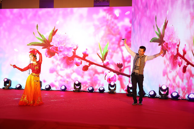 ? ? ? ? 現(xiàn)場“恒興人”一邊品嘗饕餮盛宴,一邊欣賞同事們自編、自導、自演的精彩節(jié)目,可謂是視聽與味覺的雙豐收。活力四色的開場舞《我相信》,展示了恒興企業(yè)員工信心滿滿、共創(chuàng)未來的決心;充滿異域風情的新疆歌舞《花兒為什么這樣紅》,則展示了恒興新疆項目的地域風采與燦爛未來;熱辣活力的現(xiàn)代舞《Good time》、剛?cè)岵奈璧浮稌啞?,詼諧幽默的小品《云頂書院傳》等節(jié)目讓整場晚會更多元化,讓人看得目不暇接,連連拍手叫好。