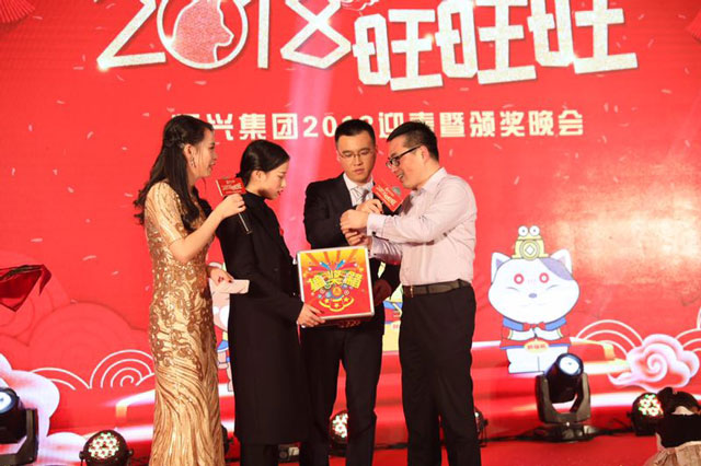 ? ? ? ? 后面進行的是晚會節(jié)目現(xiàn)場評選環(huán)節(jié)。為秉持公正公開的原則,主持人將投票時間控制在10分鐘之內(nèi)。在這短暫時間里,晚會LED大屏現(xiàn)場播放著恒興集團各產(chǎn)業(yè)、各部門、各子公司的拜年視頻,來自廈門、福州、長春、新疆乃至越南等地的同仁們發(fā)來新年賀電,喜氣洋洋地傳遞著對2018及恒興集團的期待與祝福。拜年視頻過后,工會主席洪超生為獲獎代表頒發(fā)獎金,為本場辛苦演出的“演員們”送去贊許與鼓勵,也為恒興集團2018迎春暨頒獎晚會畫上了圓滿的句號。