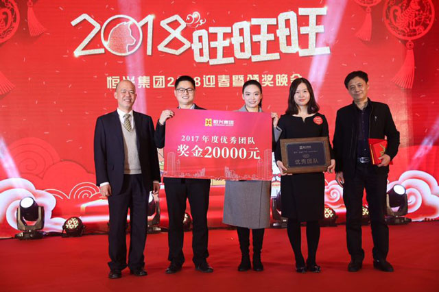 ? ? ? ? 金雞辭舊歲,瑞狗送春來。2月11日晚,恒興集團2018迎春暨頒獎晚會在五緣灣凱悅酒店絢爛開場。這場一年一度的恒興尾牙盛宴,不僅有激勵人心的頒獎典禮,還有精彩紛呈的員工表演,以恒興人特有的方式迎接繁華興“旺”的2018。