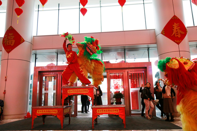 ? ? ? ? 2月24日(農(nóng)歷正月初九),廈門財富中心新年開工舞獅祈福表演在一樓大堂隆重舉行。以中國民俗“醒獅賀歲”,預示著財富中心新的一年更為吉祥紅火,各入駐企業(yè)、單位宏圖大展。