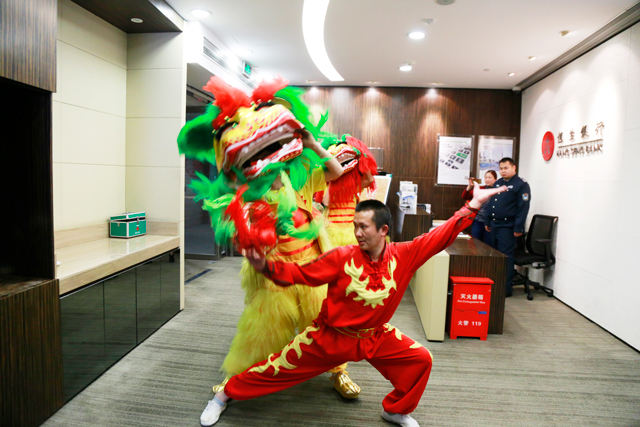 ? ? ? ? 大堂的醒獅儀式完成之后,舞獅隊還進入廈門財富中心各入駐企業(yè)、單位巡游,為他們帶去旺旺的福運。舞獅隊的到來,為財富中心各企業(yè)在新春呈上美好祝愿,也同時受到各企業(yè)的熱烈響應,爭相同舞獅隊合影留念,期望記錄下這些充滿喜慶的精彩瞬間。