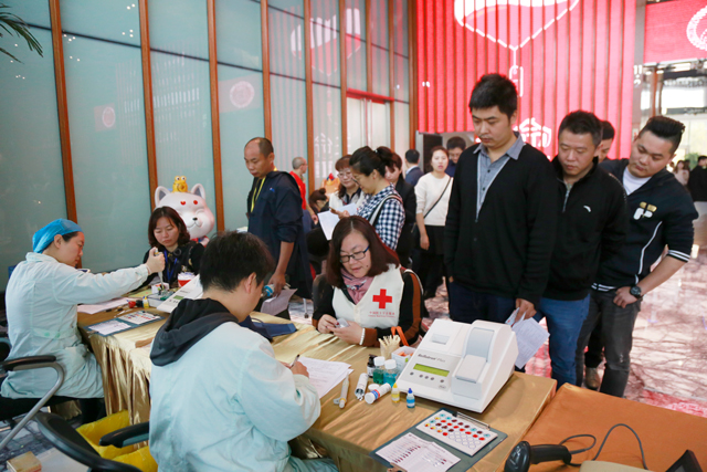 ? ? ? ? 隨后,獻(xiàn)血活動(dòng)正式開始,數(shù)十名愛心人士早早來到活動(dòng)現(xiàn)場,在市中心血站工作人員的引導(dǎo)下,有序地進(jìn)行信息登記、測量血壓、鑒定血型、血樣初篩和抽血。參與獻(xiàn)血的愛心人士中,有來自財(cái)富中心大廈入駐員工,也有周邊寫字樓白領(lǐng)和附近愛心居民;有多次獻(xiàn)血的愛心達(dá)人,也有初次獻(xiàn)血的新生力量;有身體強(qiáng)健的男士,也有巾幗不讓須眉的女士,他們用自己的涓涓熱血傳遞愛的奉獻(xiàn)。