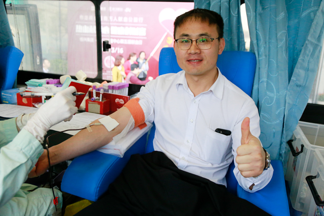 ? ? ? ? 財(cái)富中心物業(yè)維序部經(jīng)理劉志達(dá),這次是他第五次參加財(cái)富中心獻(xiàn)血日活動(dòng),每次都是400CC,他說:“無償獻(xiàn)血是團(tuán)結(jié)友愛、無私奉獻(xiàn)精神的具體表現(xiàn),也是一種互救互助的方式,大家獻(xiàn)的血能救助他人,我覺得很有意義。”