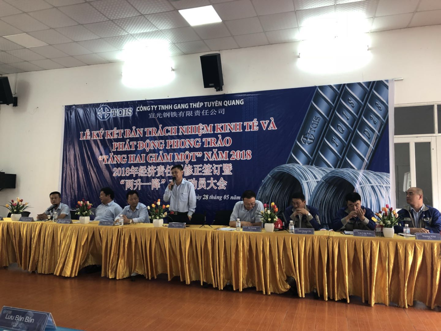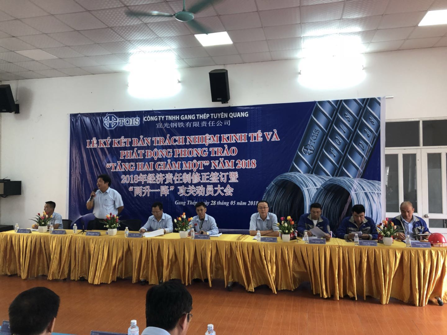 2018年5月28日上午9點(越南時間),越南宣鋼公司召開了目標(biāo)責(zé)任書簽訂暨兩升一降公關(guān)動員大會。本次會議是根據(jù)柯希平董事長提出的“兩升一降”指導(dǎo)方針?biāo)匍_,希望通過簽訂目標(biāo)責(zé)任書調(diào)動員工積極性、團結(jié)全體員工,達到“提升企業(yè)效益、提升員工收入、降低公司成本”的目的。