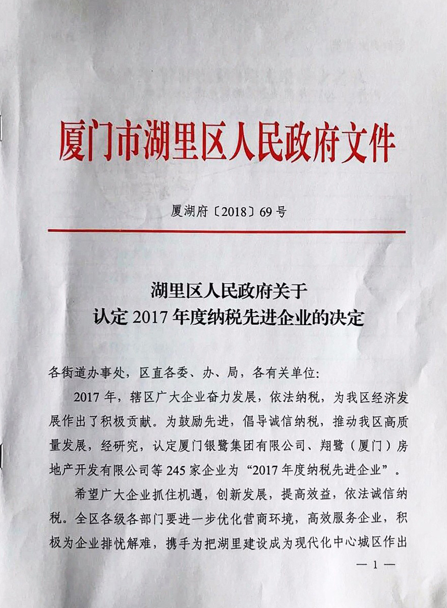 近日,廈門寶拓資源有限公司被廈門市湖里區(qū)政府授予“2017年度超900萬(wàn)元以上納稅大戶”的榮譽(yù)證書(shū)。