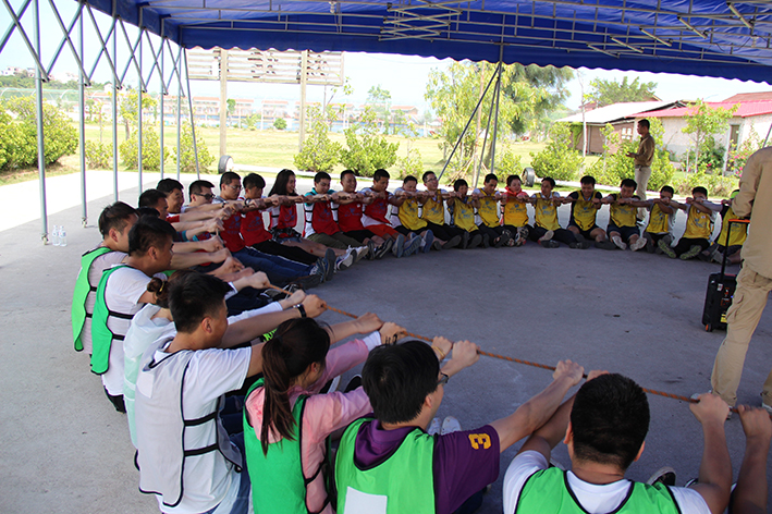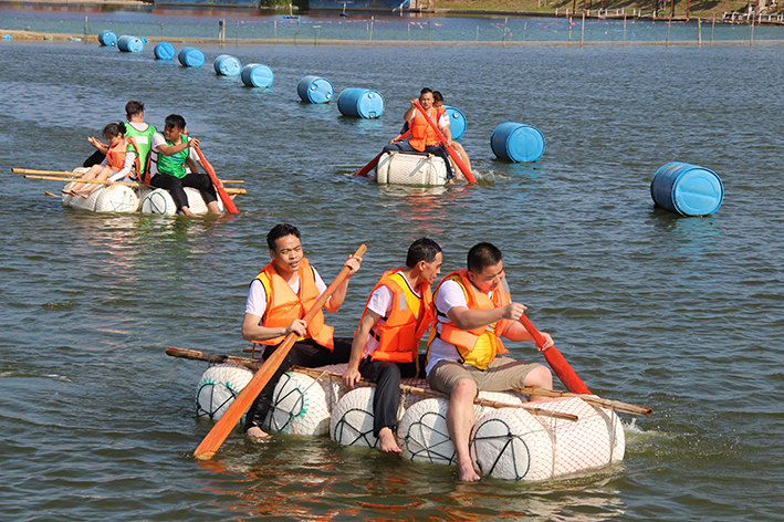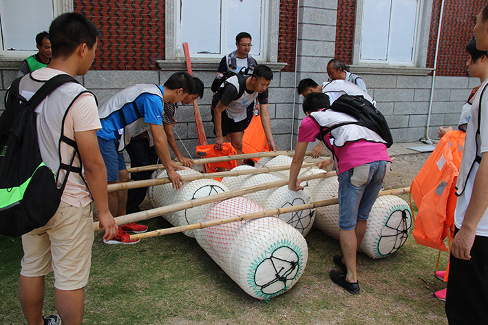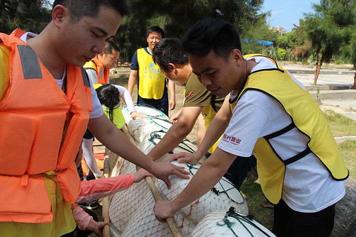 緊接著是“扎筏泅渡”的活動,各隊(duì)人員面對簡易的渡船設(shè)施——油桶、竹竿、繩子,大家透過群策群力、合理分工、凝心聚力迅速造了一艘船,而又安全地護(hù)送全部隊(duì)員抵達(dá)彼岸。讓大家更深刻地體會組織、溝通、協(xié)作在工作中的重要性,也增進(jìn)大家的情感交流。