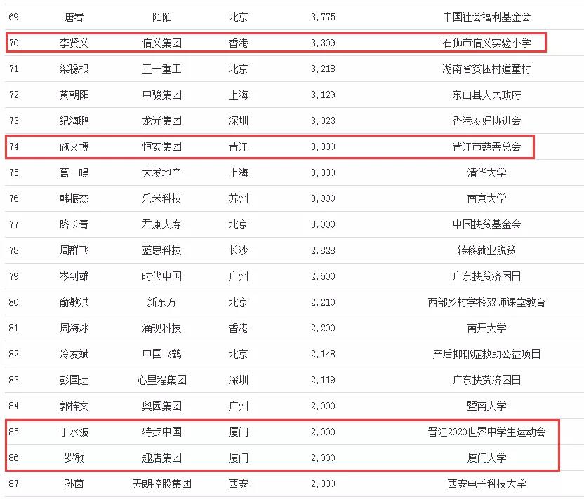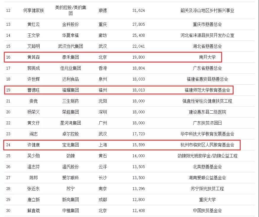 根據(jù)福布斯官方介紹,過(guò)去三年的榜單數(shù)據(jù)顯示,有29位企業(yè)家連續(xù)三年榮登慈善榜,這29位慈善企業(yè)家的合計(jì)捐贈(zèng)金額高達(dá)326億元。