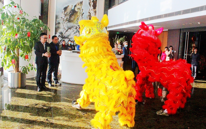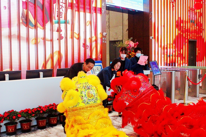 隨后,醒獅隊伍來到恒興集團42樓前臺進行精湛表演,登高采青送“旺來“,金獅從領(lǐng)導手中接過“利是”,收下開年之喜!